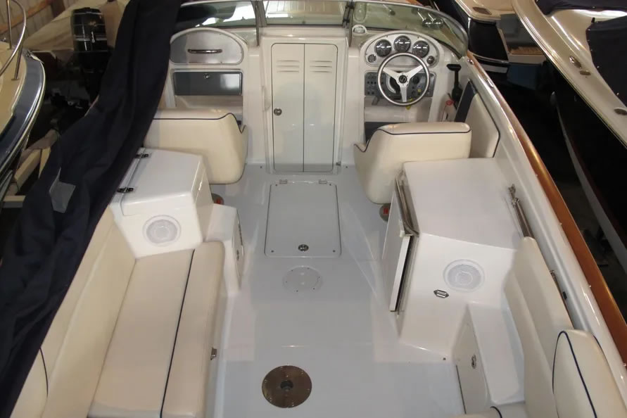 Beautiful 2003 Chris Craft 25 Corsair Heritage Edition! Only 251 low original hours on the original Volvo Penta 5.7 V-8 with duo-prop outdrive. Interior and exterior are in excellent shape. Lift-kept under a canopy and stored indoors during winter. Cuddy cabin is like new with no overnight use. Maintenance done per manufacturer schedule. This one is like new!